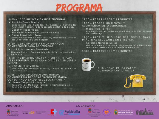 La Escuela Cántabra de Salud, integrada en la Subdirección de Cuidados, Formación y Continuidad Asistencial del Servicio Cántabro de Salud (SCS), celebró el pasado 13 de noviembre en las Antiguas Escuelas de Vargas (Puente Viesgo), la Jornada "Epilepsia: hablar, entender, incluir", dirigida a pacientes, familiares y público en general. La jornada abordó desde diferentes perspectivas la enfermedad junto a familias que conviven con la epilepsia y contó con la participación de profesionales del ámbito educativo, sanitario y social quienes aportaron su experiencia y propuestas para una mejora en este entorno.