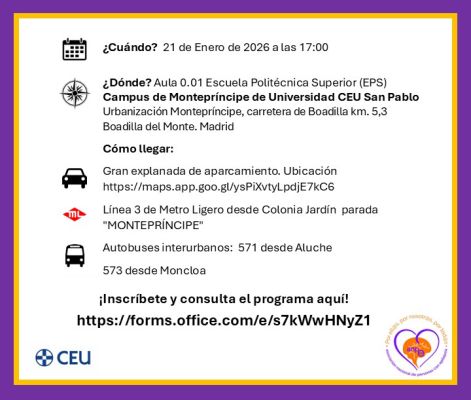 Lugar: Aula 0.01 Escuela Politécnica Superior (EPS). Universidad CEU San Pablo, Campus de Montepríncipe.
